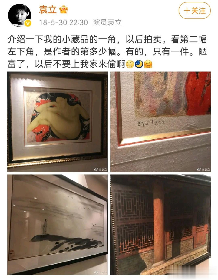 袁立的家里也摆了许多保藏作品,她追求文艺,家里的装修也很有魄力,她的家里宛如画作博物馆,处处齐有艺术口头。