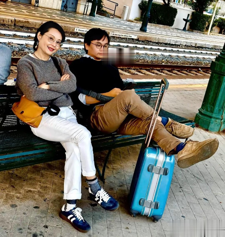 俩东说念主一齐去法国旅游,穿的齐很朴素,俩东说念主径直拎一个小行李箱等车,莫得极少偶像背负。