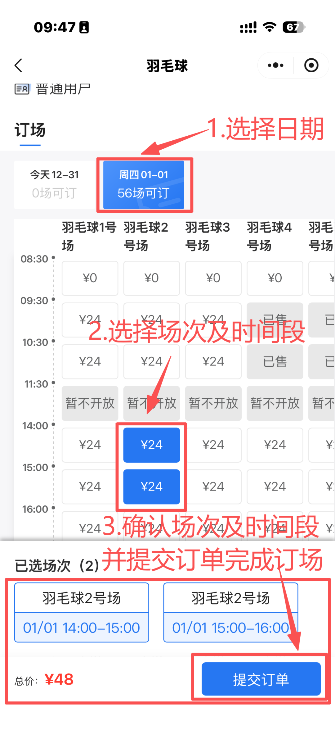 室内羽毛球馆:17:00前24元/小时、17:00后50元/小时