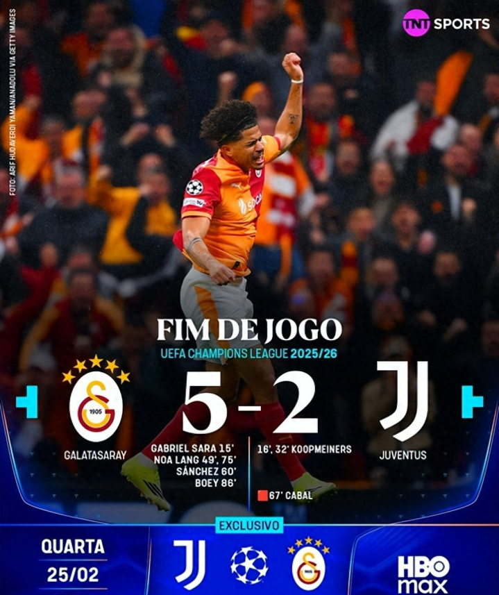 斑马军团老媪东说念主尤文图斯客场挑战土超朱门加拉塔萨雷的比赛中,尤文客场2-5惨败于加拉塔萨雷;