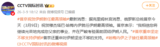 据CCTV海外时讯音尘,据克里姆林宫音尘,投注平台米乐俄罗斯总统普京今天(3月9日)祝福穆杰塔巴·哈梅内伊就任伊朗最高首长。普京默示:“我肯定您将持续光荣地完成您父亲的管事,并在严峻锻练眼前和解伊朗东说念主民。”普京还重申对伊朗刚毅不移的撑捏。