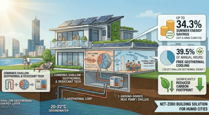 台湾一个洽商团队设备了一种伙同浅层地热能与干燥剂转轮的搀和空调系统。现场测试阐述,在炎暑湿气的场面条目下,该系统比拟传统空调可缩短约34.3%的能耗,在较为温文的春季和秋季也可已毕18.7%的节能效果。该恶果发表于《动力休养与责罚》期刊。
