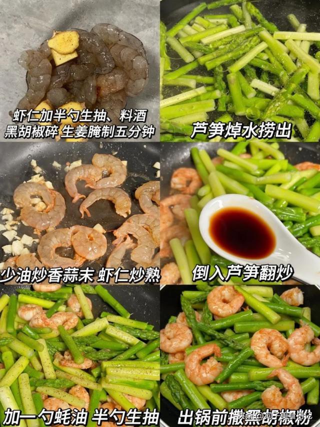 芦笋炒虾仁也透露,芦笋焯水后和虾仁快炒,脆嫩鲜好意思,一盘下去浑身安定。
