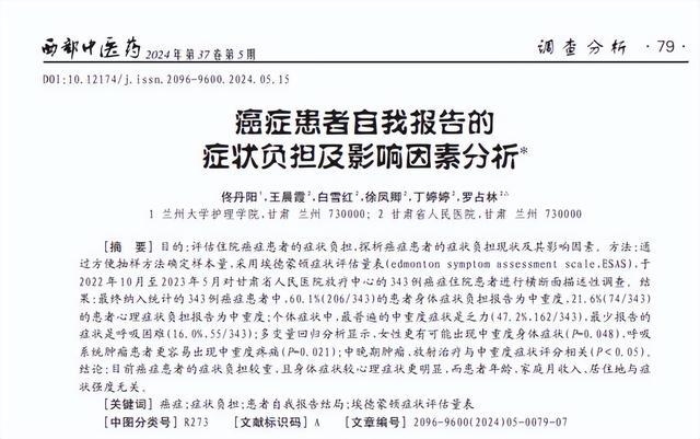 [1]佟丹阳,癌症患者自我陈述的 症状服务及影响身分分析∗,西部中医药,2024-05-15