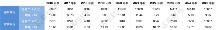 2025年是重庆银行与渝农商行范畴成长分化的要道一年。重庆银行结束高增长式彭胀,认真踏进万亿银行梯队;渝农商行则陆续适当措施,稳居寰宇农商行“一哥”位置。