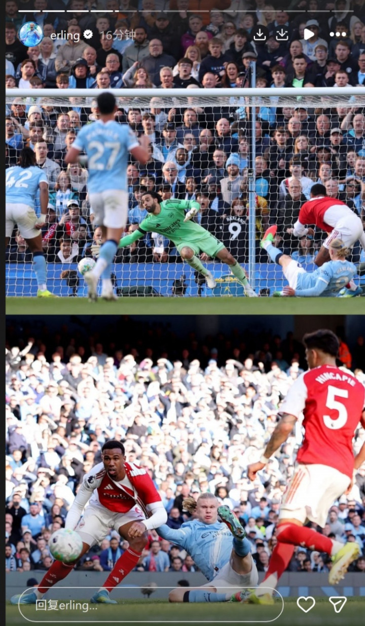 直播吧4月20日讯英超第33轮比赛,哈兰德获得进球,曼城主场2-1打败阿森纳。